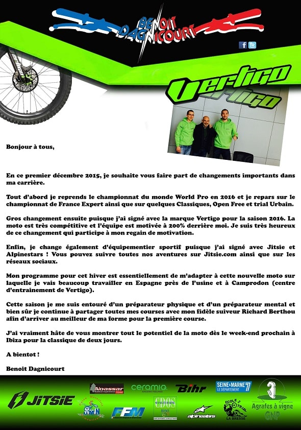 Trial : Les premiers tours de roue de Benoît Dagnicourt sur sa nouvelle monture par >ICI<.