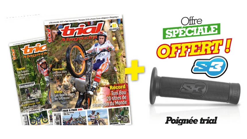 Abonnez-vous pour 1 an à Trial Magazine et recevez en cadeau 2 poignées Trial S3 d’une valeur de 9,90€. Cliquez ici pour profiter de cette offre