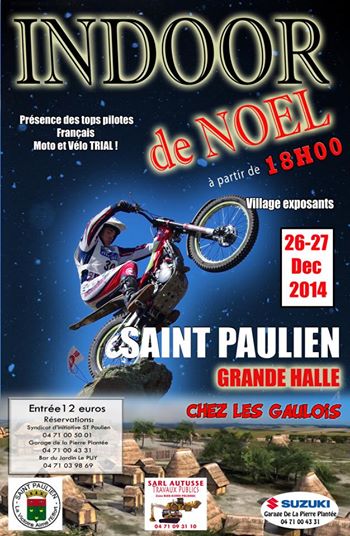 Après le succès de la première édition du Trial Indoor de Noël, la Ville de Saint-Paulien (43), l’association KT Team et le Moto-club du Livradois s’associent avec tous les partenaires pour organiser une 2e édition les 26 et 27 décembre prochains.