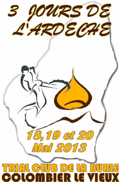 La 3e édition des 3 jours de l’Ardèche aura lieu les 18,19 et 20 mai 2013 (week end de Pentecôte). Les inscriptions seront mises en ligne sur www.trial-club.com le vendredi 18 Janvier à 20 heures. Conformément au nouveau règlement du trophée de France des classiques seuls les pilotes licenciés à la FFM (pas de licence à la journée) et les pilotes étrangers pourront s’inscrire à cette date. Le 8 février à 20 heures les inscriptions seront alors ouvertes aux licences à la journée. Attention cette année les inscriptions seront individuelles, bien sur des groupes pourront être constitués par la suite.