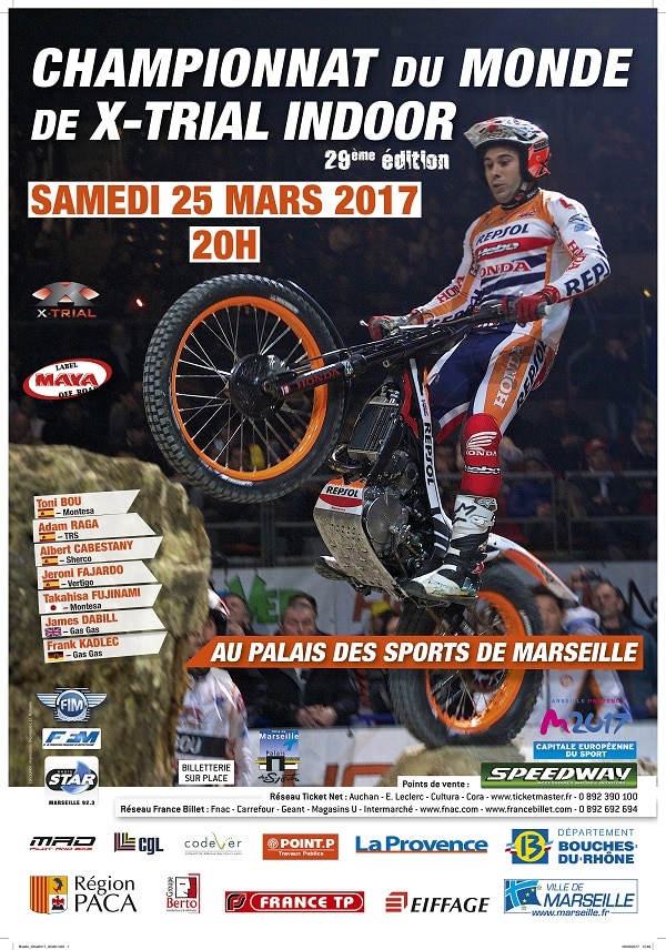 Pour la 29ème fois, le Palais des Sports va accueillir samedi 25 mars 2017 le X-Trial Indoor de Marseille du championnat du monde.