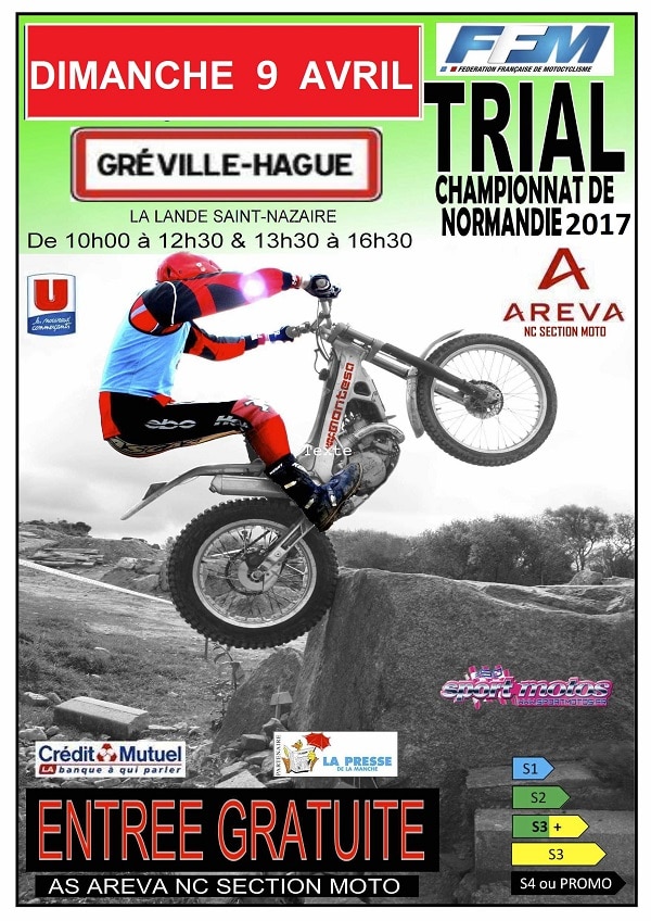 Le 23e trial de Greville-Hague (dans la superbe région de la Manche) aura lieu le dimanche 9 avril 2017, ce sera la seconde manche du championnat de Normandie. Toutes les catégories sont prévues : S4, S4+, S3, S3+, S2, S1 et Educatif.