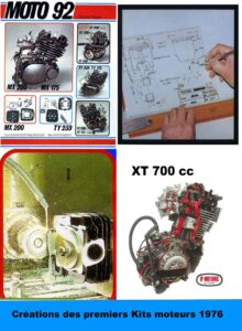 Voici donc un tout nouvel ensemble cylindre culasse-piston, original, commercialisable en 175 cc mais aussi en 200 cc. Le succès est immédiat : j’en vends 1100 ensembles ( Kits ) la première année , avant même que les pièces sortent finies, de l’usine où je les fais fabriquer en région parisienne , La deuxième année, j’en vends 1300 unités, c’est un Tsunami à «Moto 92». Dans la foulée, je vais créer la XT 600 cc,( pour la 500 cc ) même succès ! ….. Et cela nous mène en 1981, ou je décide d’arrêter totalement toutes compétitions motos , afin de me consacrer à mes fabrications.