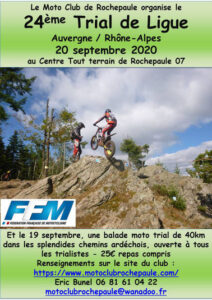 Épreuve réservée aux licenciés UFOLEP, organisée par le MOTO CLUB DE ROCHEPAULE, ouverte aux motos de trial anciennes et modernes, 16 zones sur un parcours d’environ 39km comportant 2 boucles (à faire le samedi et le dimanche) dans les paysages magnifiques du Haut Vivarais Ardéchois, dans l’esprit du trial à l’ancienne.