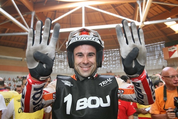 Toni Bou (Repsol Honda) est devenu dimanche le premier vainqueur de huit titres en Championnat du Monde FIM de Trial, s’imposant dans la deuxième et dernière journée du Grand Prix d’Espagne, à domicile, à Arnedo.Il aurait fallu un désastre pour empêcher Bou de coiffer une 8e couronne. À 28 ans, Bou dépasse Jordi Tarres et Dougie Lampkin (7 titres), il termine avec 15 points d’avance sur son concurrent.Adam Raga (Gas Gas) a terminé à la 2e place et scelle son statut de vice-champion. Jeroni Fajardo (Beta) a complété un 8e podium 100% espagnol cette saison. Cela n’a pas suffi pour battre Albert Cabestany (Sherco) pour la troisième place du Championnat. Takahisa Fujinami (Repsol Honda) termine au pied du podium devant Jorge Casales (Gas Gas), Pol Tarres (Sherco), Matteo Grattarola (Gas Gas) et Alexandre Ferrer (Sherco) qui se tenaient en 8 points.Le nouveau vainqueur de la Coupe champion du monde FIM de trial Jaime Busto (Beta) a conclu sa saison avec un septième victoire devant Miquel Gelabert (Sherco) et Quentin Carles de Caudemberg (Beta). Franz Kadlec (Beta) a terminé 4e et termine 2e du général. Pour la deuxième fois en deux jours, Noe Pretalli (JTG 2014) a remporté le FIM 125 Trial. Comme la veille, il a devancé Romain Corna (Beta) et Andrea Riva (Beta).