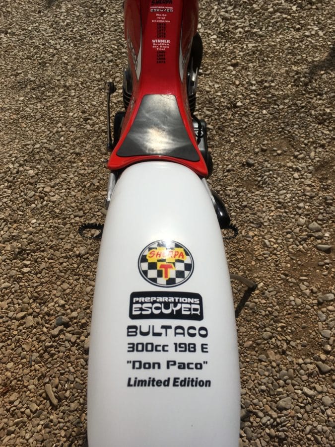 « Notre prototype Bultaco Sherpa 300 type 198 E « Don Paco » est une création totalement originale, en imaginant ce que Bultaco aurait pu sortir au catalogue en 1990 si l’usine n’avait pas fermé ses portes.