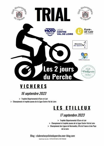 Les engagements sont ouverts pour les DEUX JOURS DU PERCHE, avec possibilité de s’inscrire directement avec HELLOASSO. Autres possibilités, envoyer son engagement papier, avant le 07.09.2023 (pour bénéficier du tarif réduit de 25 € par jour pour un adulte et 10 € par jour pour un jeune de moins de 18 ans…) ou de s’inscrire le jour avec un supplément (35 € par jour pour un adulte et 15 € par jour pour un jeune).