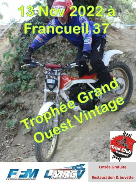 Et à la même date, RV d’Anciennes près de Chenonceaux (37) pour la finale du Trophée du Grand Ouest de Trial Vintage : voici le communiqué du club :