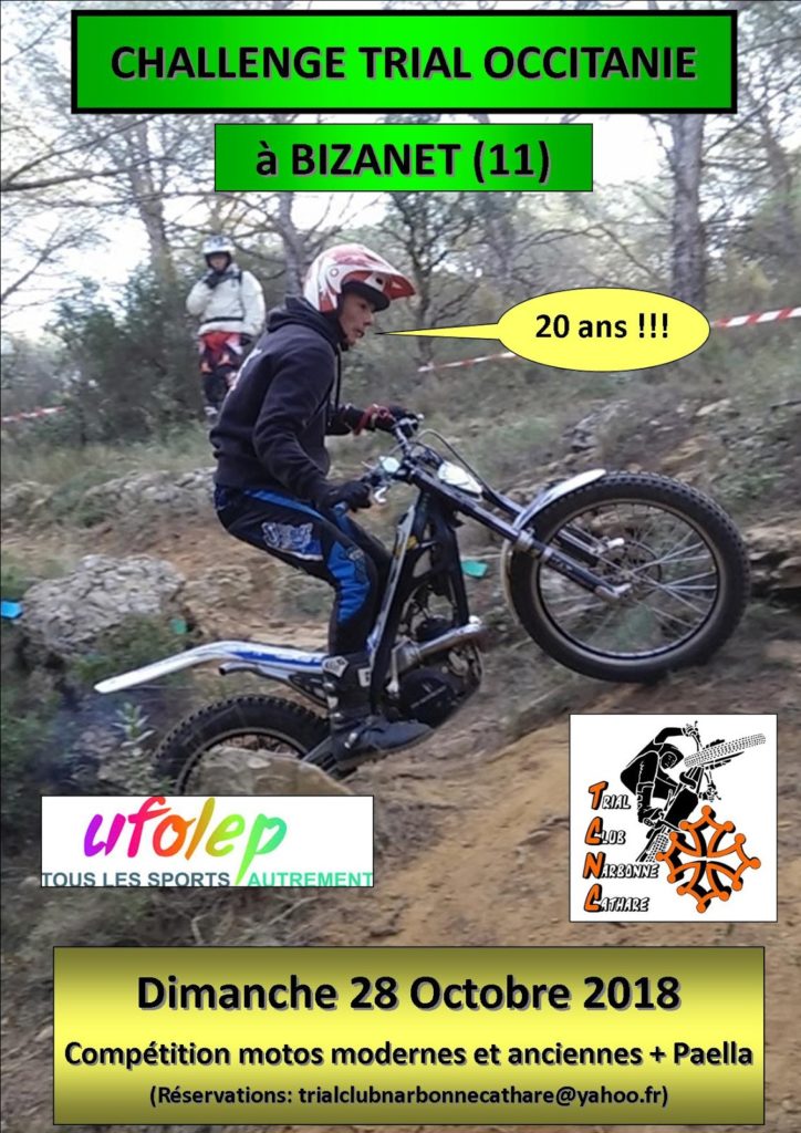 « Le Trial Club Narbonne Cathare organisera le 28 Octobre prochain une épreuve du challenge Ufolep Occitanie à Bizanet (Aude – 11) sur le terrain des Potences.
