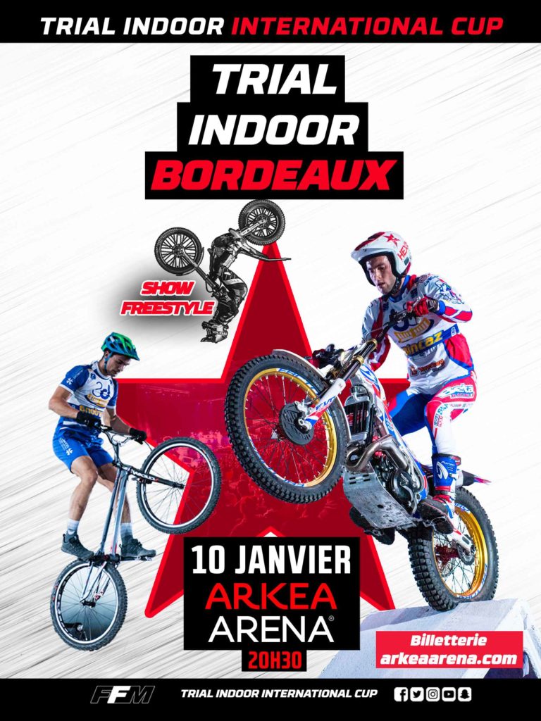 L’Arkéa Arena de Floirac (33), située sur la rive droite de la Garonne à Bordeaux, accueillera le vendredi 10 janvier prochain la 2ème édition du Trial Indoor International de Bordeaux.