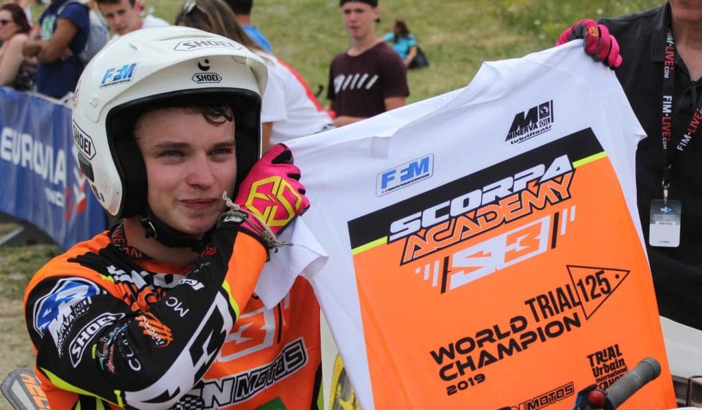 C’est fait : Kiéran Touly (Scorpa) a remporté hier à Auron (06) le titre de Champion du Monde 125 ! La toute première fois que ce titre est attribué puisque les années précédentes, il ne s’agissait que d’une Coupe 125 FIM…