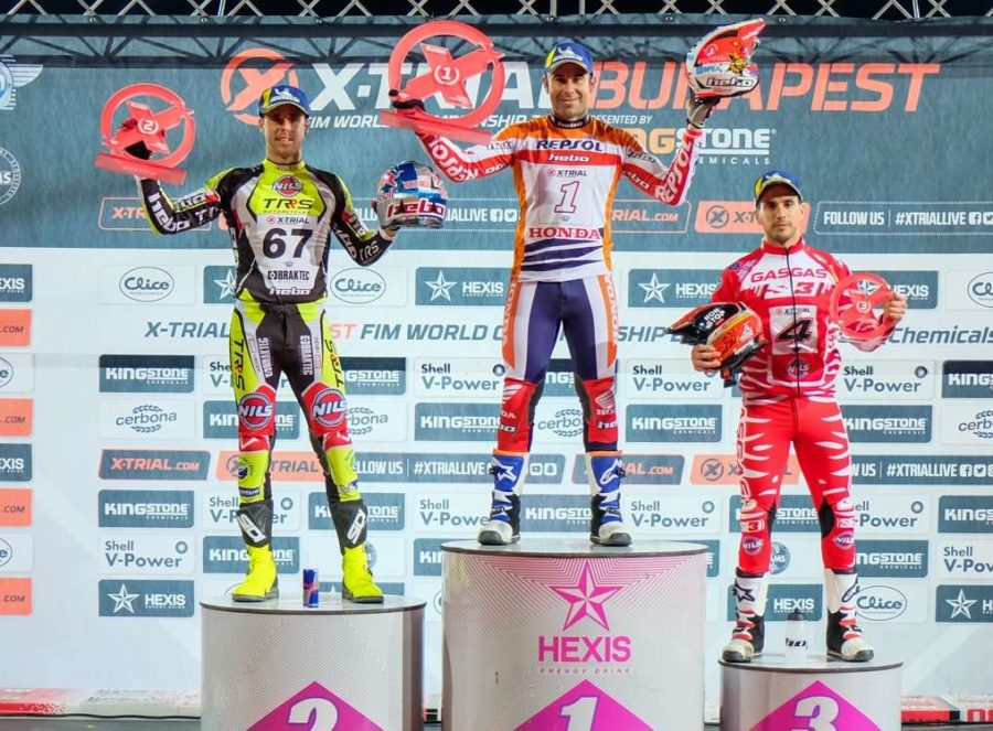 Le communiqué de l’organisateur 2Plays : le champion du monde de X-Trial, Toni Bou (Repsol Montesa-HRC) a remporté sa première victoire de la saison dans l’Aréna de Budapest devant 5 400 spectateurs. L’Espagnol a remporté une finale passionnante face à son compatriote Adam Raga (TRS), vainqueur de l’épreuve hongroise l’année dernière.