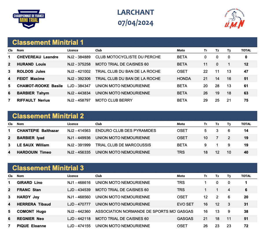 Le dimanche 7 avril à Larchant (77), c’était la deuxième manche du championnat de France de Minitrial, organisée par l’UM Nemours. Avec 18 jeunes pilotes prêts à en découdre sur ce terrain, l’ambiance était au top, surtout avec Benoit Dagnicourt et le parrain de l’évènement : Benoit Bincaz, présent toute la journée pour conseiller et accompagnés les futurs champions !