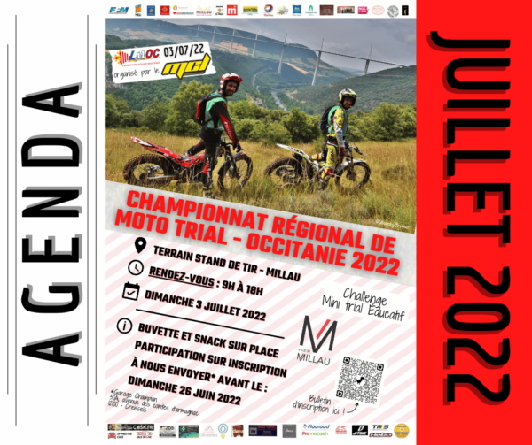 dimanche 3 juillet, le moto club du Lévézou organise la 3ème manche du championnat de moto trial récentes et anciennes, ainsi que le challenge éducatif de la ligue d’Occitanie, au terrain du stand de tir à la cadenède à Millau (12).