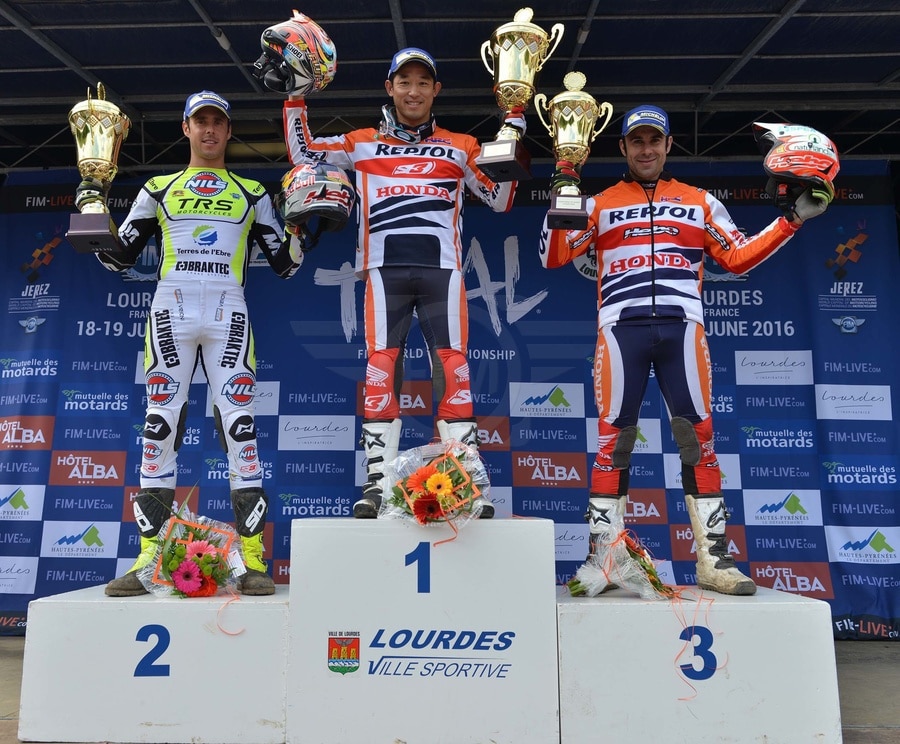 Le deuxième jour du chpt du monde de Trial à Lourdes en France a réservé une belle surprise puisque c’est le vétéran Takahisa Fujinami qui s’impose avec une confortable avance sur Adam Raga. Toni Bou prend la 3ème place, c’est son plus mauvais résultat depuis le début de la saison !! Il a lutté pour conserver le podium face à son compatriote Jaime Busto.