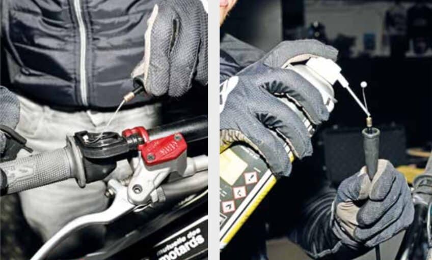 5 – Faire glisser à la main le câble de gaz afin de permettre à l’huile de s’écouler dans la gaine.