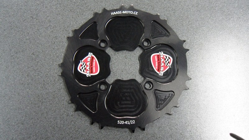 Haase racing technology propose ces intéressantes couronnes en Certal usiné dans la masse, qui ont la particularité de disposer de presque moitié moins de dents qu’une couronne classique, offrant ainsi moins de résistance et plus de puissance. Un produit à découvrir, disponible en plusieurs tailles, pour toutes machines avec quatre trous de fixation à l’arrière.