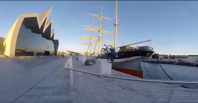 Petite ballade le long du port pour Danny MacAskill. Un petit mot du champion avant le tournage de cette vidéo : « Certains jours au travail sont plus durs que d’autres… », la preuve en photo.