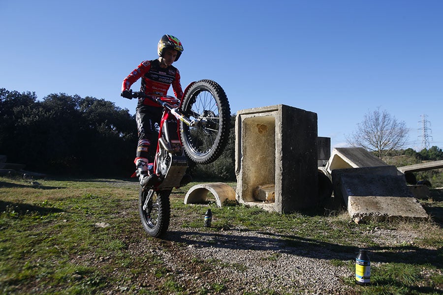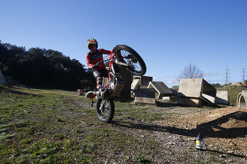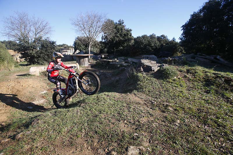Soyons clair, cabrer avec une machine de trial est un jeu d’enfant. Bourrée de couple, celle-ci ne demande qu’à lever sa roue avant. Après, maîtriser le point de départ du cabrage et la fin n’est pas si enfantin que cela. Maîtrise des gaz, de la roue arrière et du frein arrière se posent en condition de la réussite.