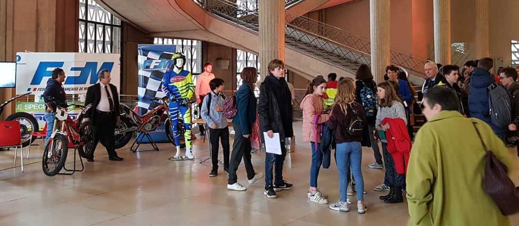 Sur invitation de M. Dourneau du CESE, un stand Trial y a présenté notre discipline et notamment les motos électriques. Avec en perspective à moyen terme, les Jeux Olympiques de 2024 et l’idée de parvenir à y faire inclure le trial en tant que sport de démonstration…
