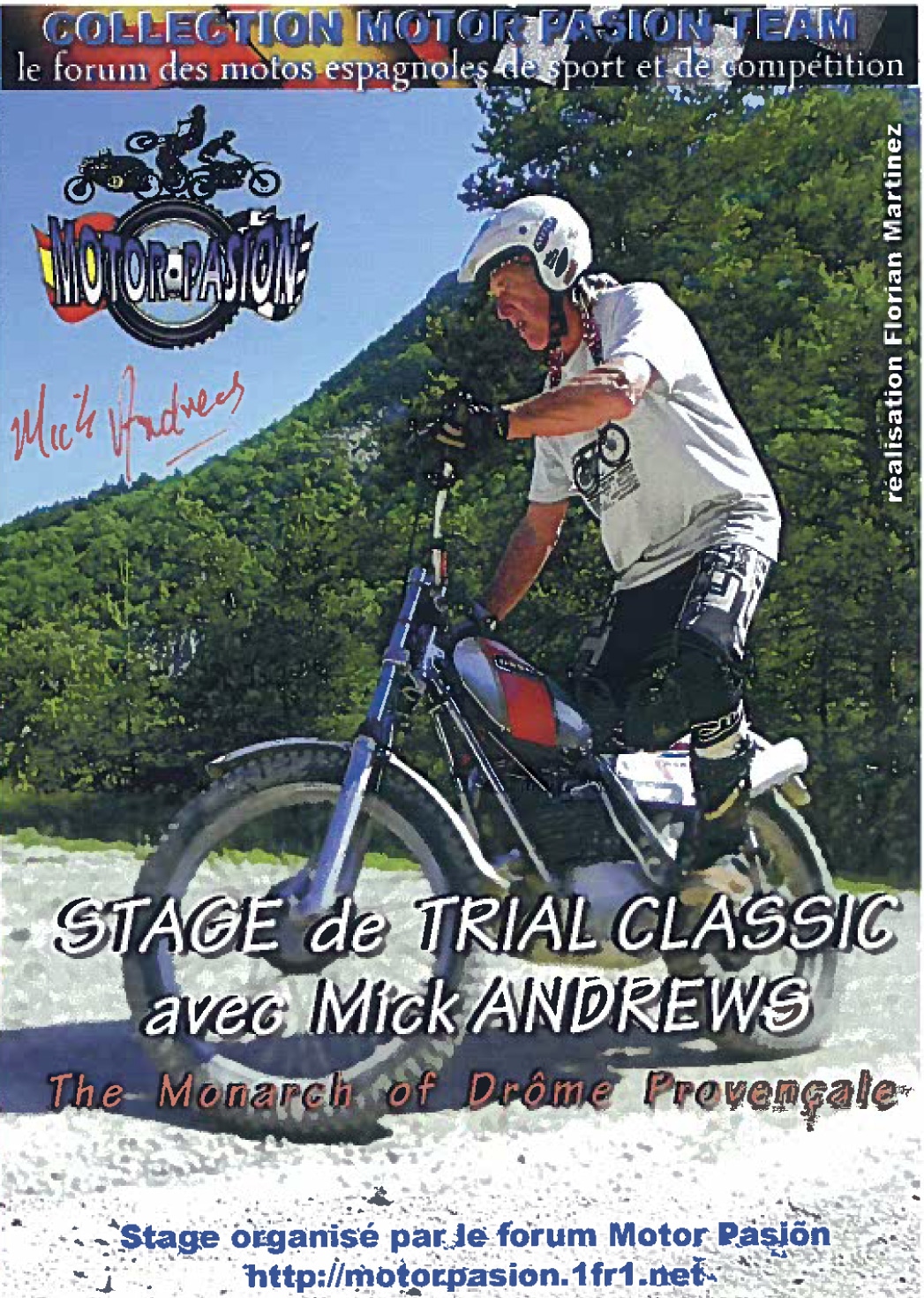 Ce DVD exceptionnel vous permet de réaliser un rêve : vivre une journée de stage de trial à l’ancienne avec le célèbre pilote Mick Andrews, champion du monde 1971 et 1972. Profitez ainsi des conseils du Maître, le tout sans même quitter votre salon ! Elle est pas belle l’histoire ? Durée 55 minutes environ.