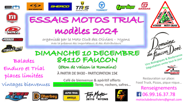 5ème journée d’essais Trial « modèles 2024 » le Dimanche 10 décembre à Faucon (84110)