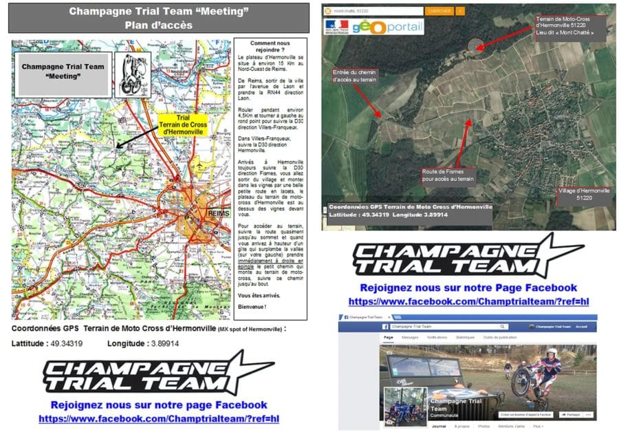 « De toutes nouvelles zones tracées sur le terrain de Moto-cross d’Hermonville à environ 15 km au nord-ouest de Reims vous accueilleront en toute convivialité.