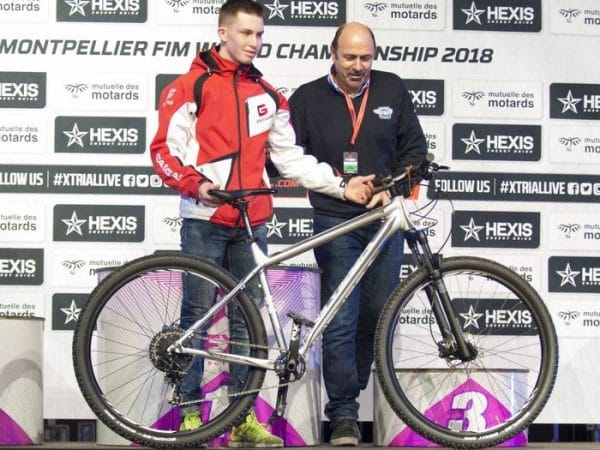 Un Mountain Bike de la marque Univega lui a été remis lors du championnat de monde FIM de X-trial à Montpellier devant plus de 3000 personnes.