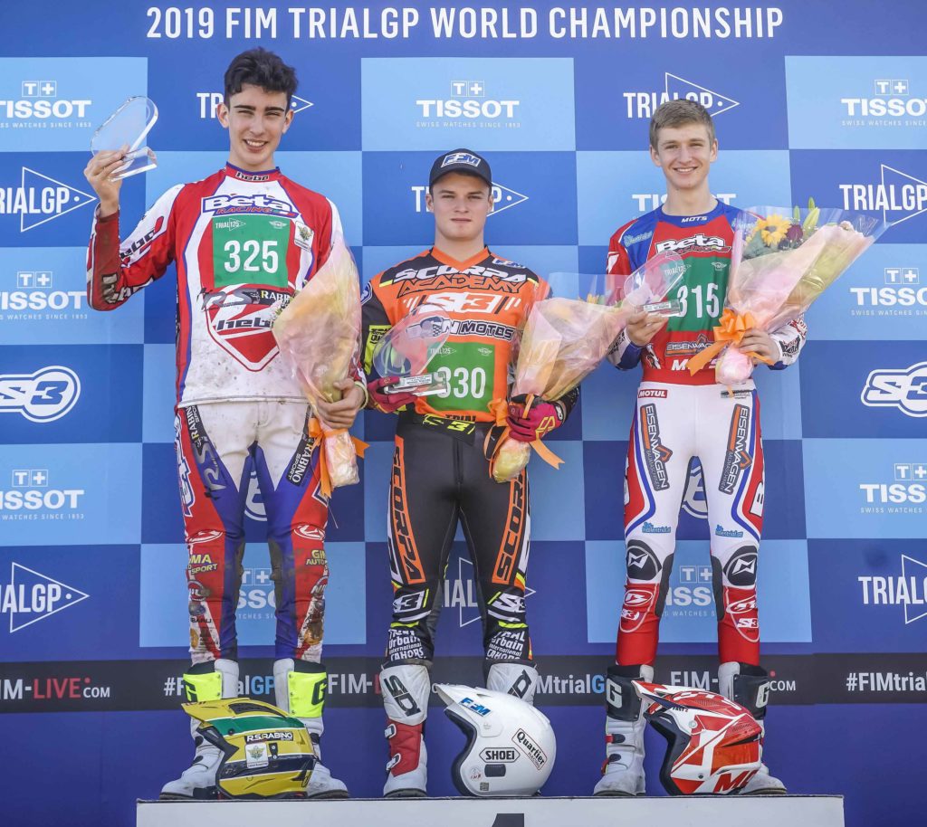 Et enfin en Trial125, Kiéran Touly emporte lui aussi une seconde victoire consécutive ! Il devance Carlo Rabino et Marco Mempoer.