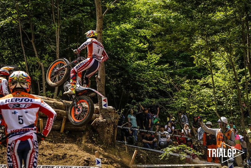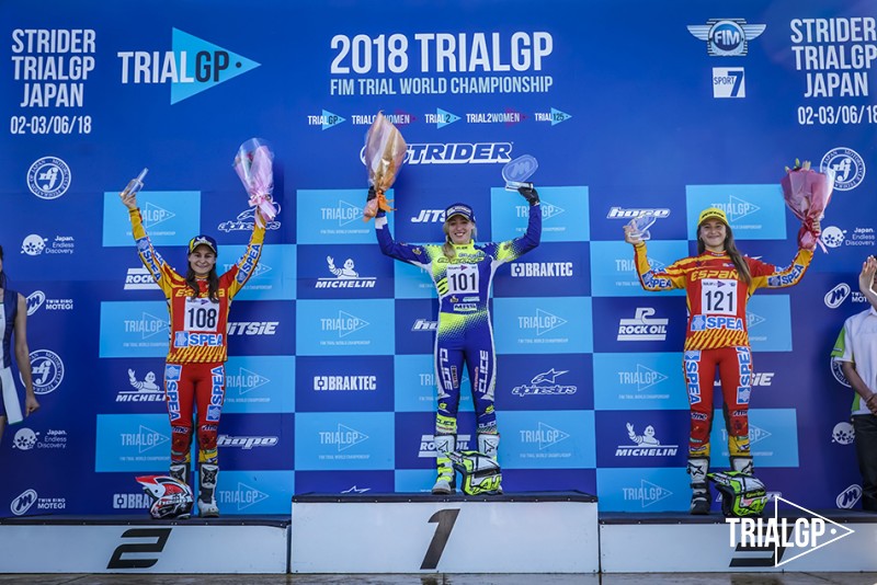 Circuit de Motegi, dimanche 3 juin, second jour du GP du Japon : Bou se classe deuxième derrière Busto et devant Raga. Après la victoire de son coéquipier hier, Jaime Busto, qui signe son premier succès en catégorie Reine, offre donc un improbable doublé à la marque ibérique sur les terres de Honda et Toni Bou, qui n’attendaient que cela de célébrer la 100e au Japon !