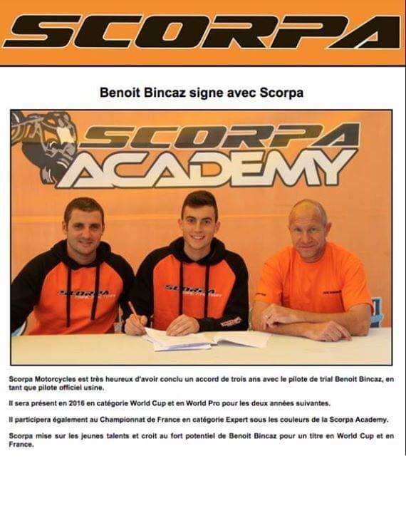 Scorpa Motorcycles est très heureux d’avoir conclu un accord de trois ans avec le pilote de trial Benoit Bincaz, en tant que pilote officiel usine.