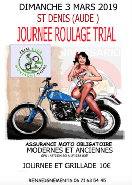 Le dimanche 3 mars 2019, le Trial Club de la Montagne Noire organise une journée de roulage sur son site de Saint Denis (Aude).