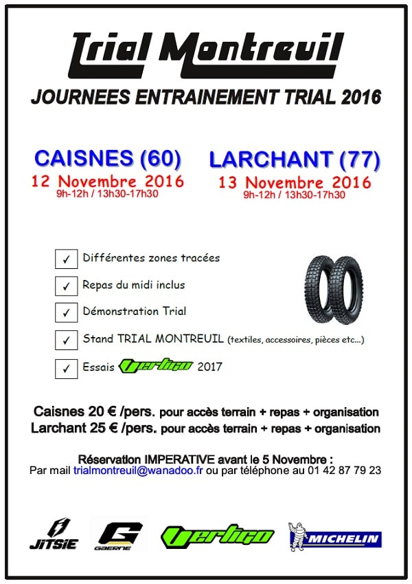 Trial Montreuil organise deux journées d’entraînement les 12 et 13 novembre prochain, à Caisnes (60) et Larchant (77).