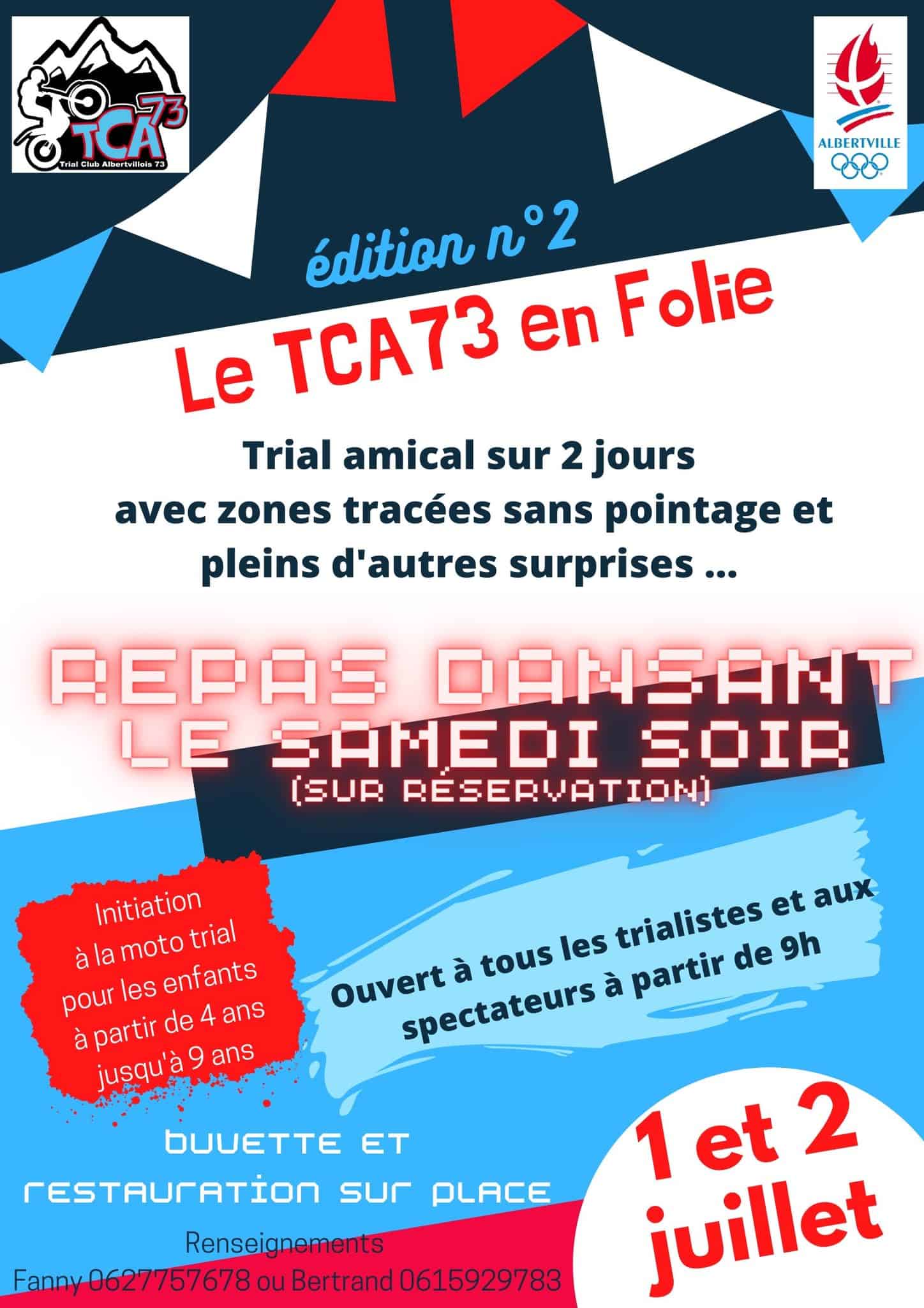 Et une semaine plus tard, c’est au tour du TCA73 d’Albertville (73) de vous convier à la 2ème édition de un week end de folie, festif et sportif. Entre initiation trial, repas dansant, roulage amical et démos des meilleurs pilotes français, le menu de ce premier week end de juillet s’annonce plus que copieux !!!