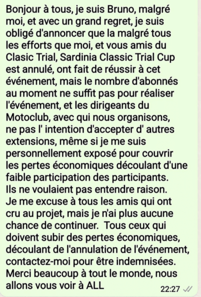 Comme on le craignait déjà il y a peu, la Sardinia Classic n’a pas rassemblé suffisament d’inscriptions. Et l’organisateur se voit contraint d’annuler son épreuve.