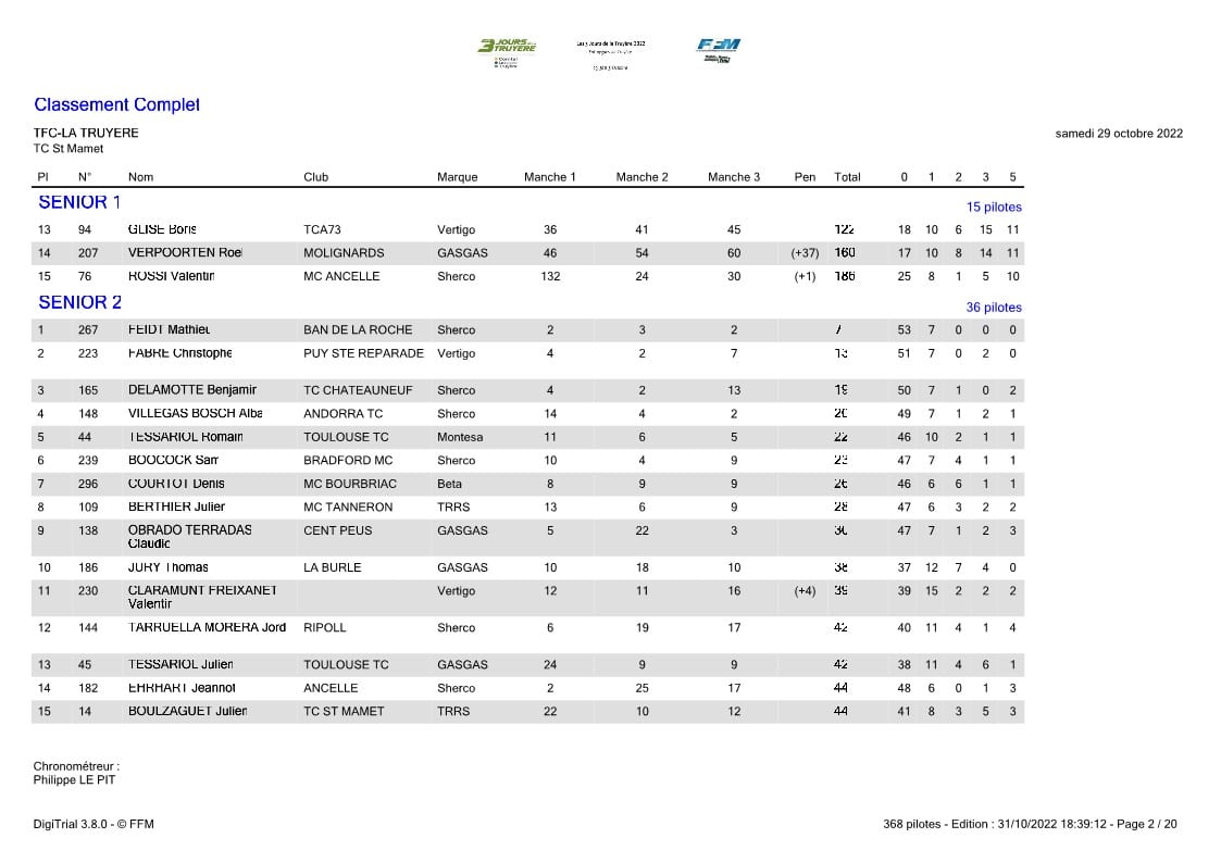 Voici maintenant les classements complets du Championnat de France des Classiques : TFC General_2022