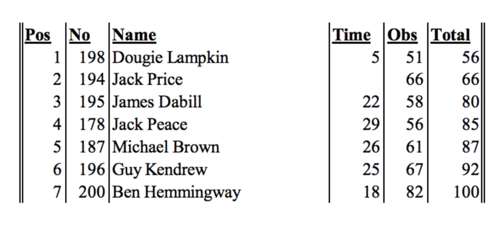 Et cela de belle façon, puisqu’il a réussi à cumuler le plus petit total de pénalités en zones et le moins de pénalités de temps ! Il devance ainsi Jack Price et James Dabill.
