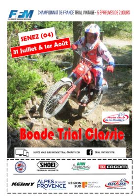 L’Espace Loisirs Boade (04) pour la 3ème fois va proposer une manche du TVT, cette année qui sera la seconde du Championnat de France de Trial Vintage les 31 juillet et 1er Août.