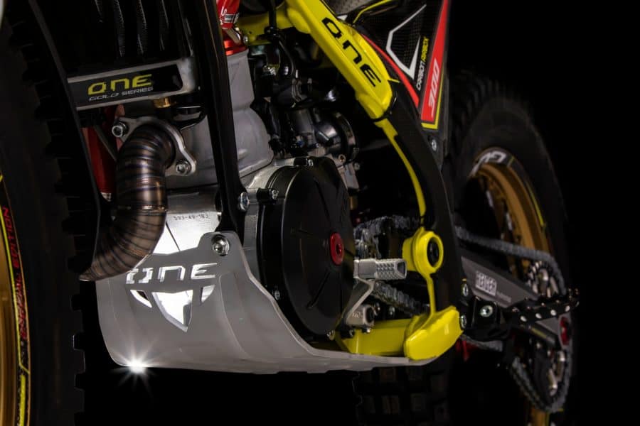 Commandes : du haut de gamme avec des freins de Braktec, étrier avant CNC, pompe de frein et d’embrayage réglable usiné. A l’arrière, le nouveau maître – cylindre incorpore le réservoir d’huile.
