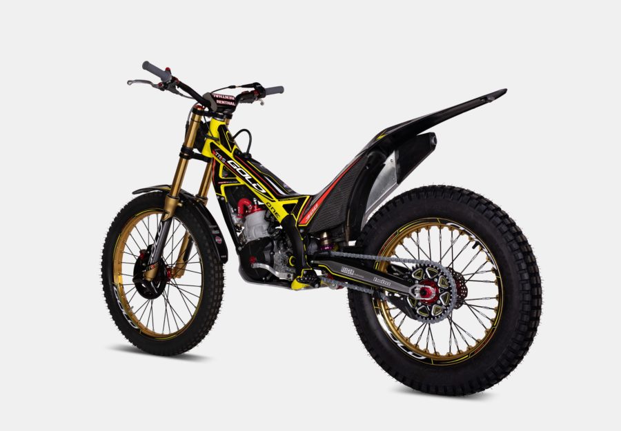 Suspensions : la nouvelle GOLD est équipée d’un amortisseur Reiger Hydrostop avec de nouveaux paramètres de compression. A noter aussi un nouveau tampon d’adaptation qui procure une sensation plus progressive en fin de la course. La fourche TECH « or » est livrée avec de nouvelles garnitures et bouchons usinés en rouge.
