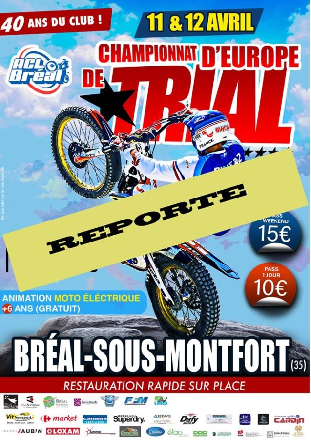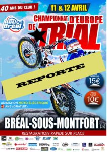 suite aux recommandations de FIM EUROPE et aux risques de contamination du CORONAVIRUS, nous vous informons que l’épreuve championnat d’Europe des 11 et 12 avril à BREAL sous MONTFORT est reportée à une date ultérieure, que nous vous communiquerons dés que celle-ci aura été définie