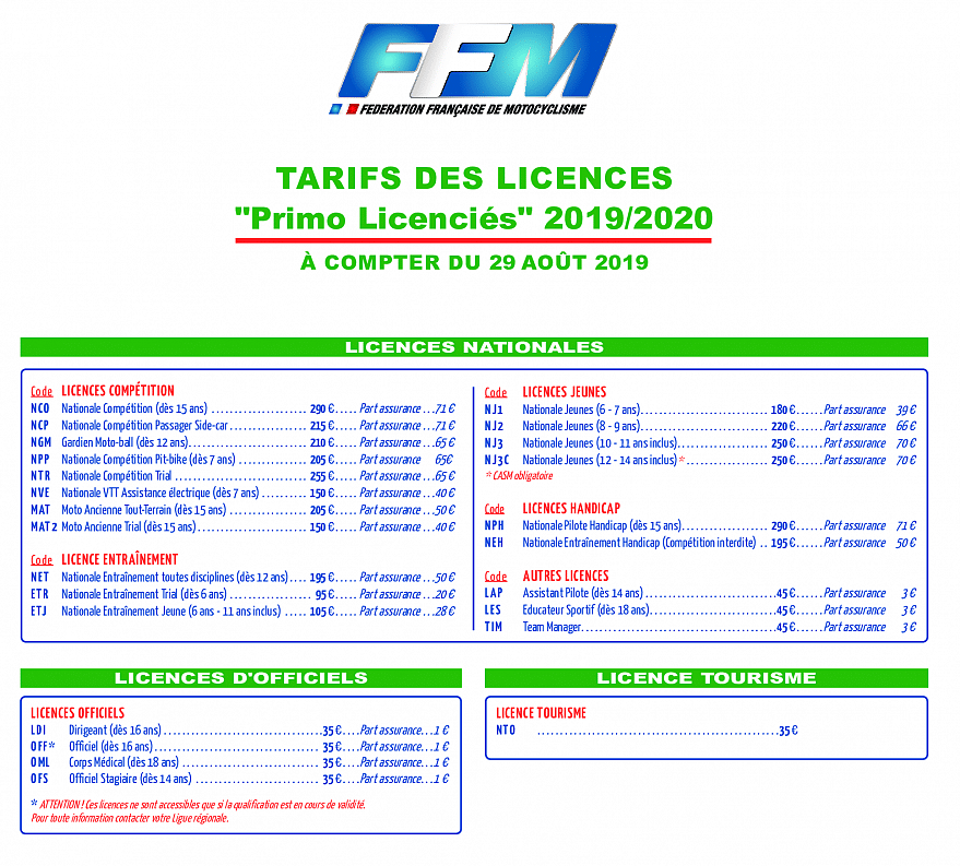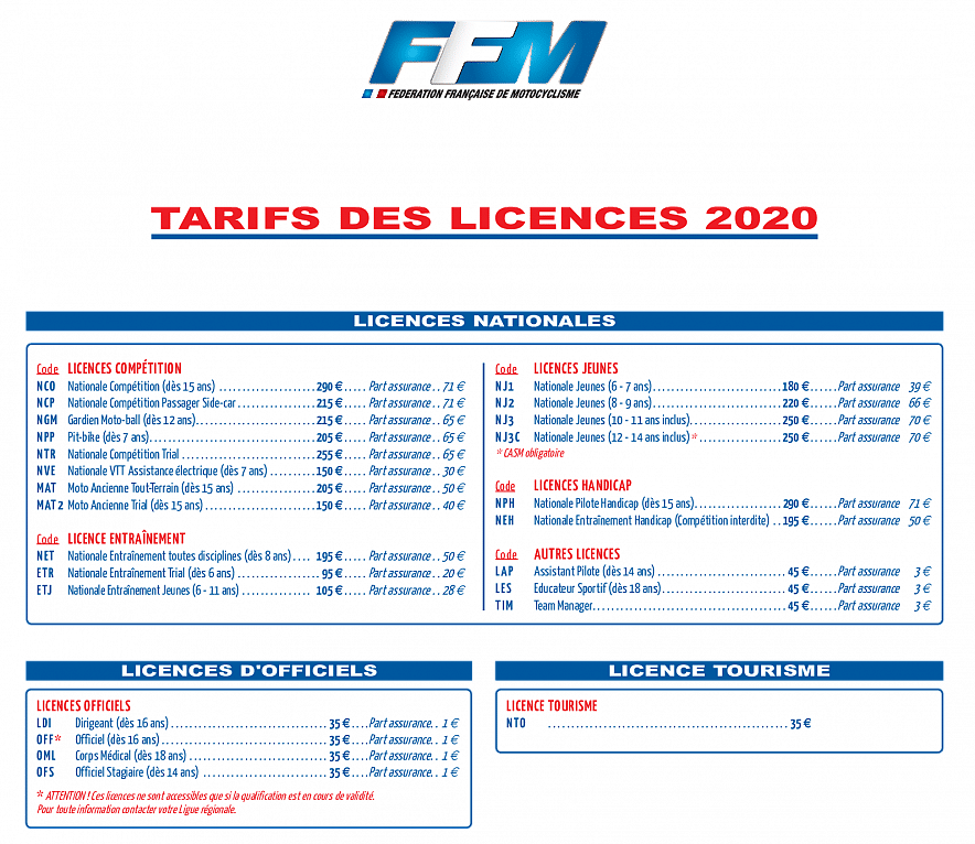 Notre chère Fédération Française de Motocyclisme (FFM) vient de mettre en ligne les tarifs des licences 2020.