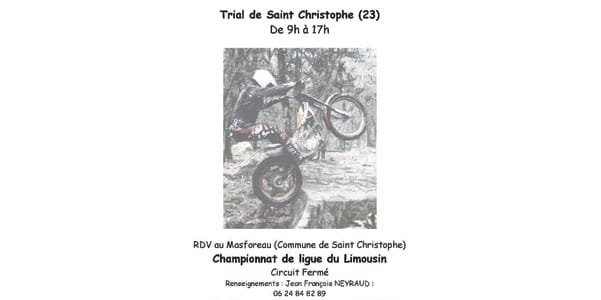 L’ATC St Christophe organise la première manche de la ligue du Limousin le 07 avril 2013. Les superbes sites de la Creuse vous attendent. Il y aura 3 tours de 10 zones en circuit fermé. RDV au lieu-dit Masforeau (commune de Saint Christophe) 23000. Premier départ 9h30.