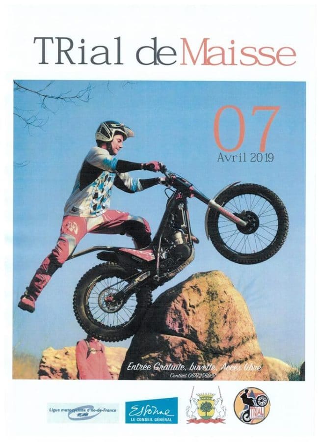 « Très beau site pour les trialistes et le public. Nous vous attendons au pied de très belles zones et sous le soleil de Maisse. Entrée gratuite, buvette, accès libre aux zones. Merci aux pilotes de penser à s’inscrire à l’avance en téléchargeant le Bulletin Engagement Trial Ligue ! ».
