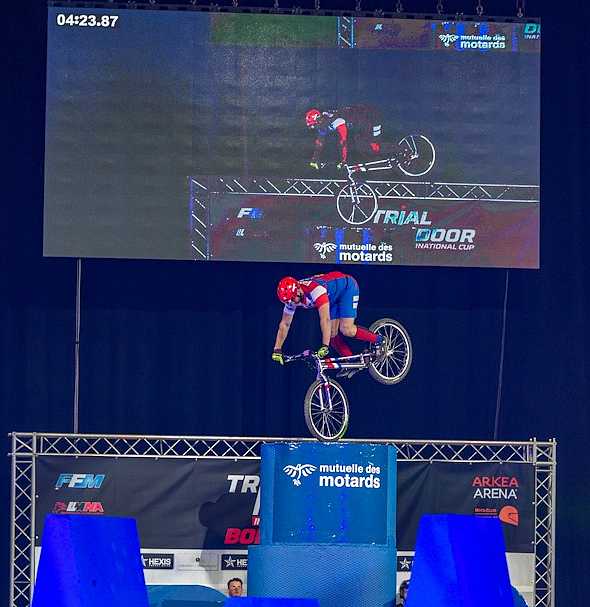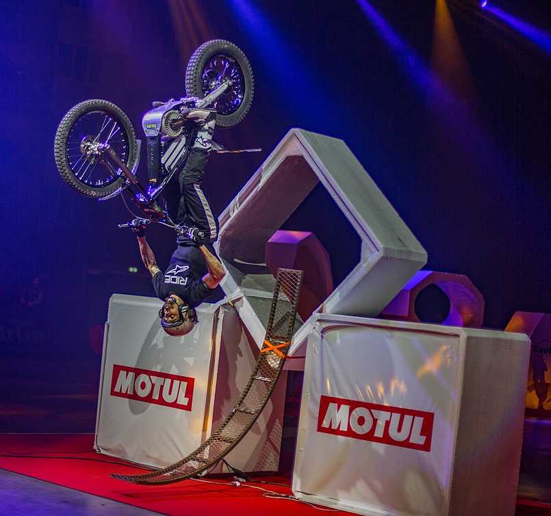 22h15 : Acrobatie moto avec Florian du Duo Mechanic Circus .Show Vélo Trial et Show Freestyle Trial . 2ème tour pour les six pilotes du Trial Indoor. Show surprise – 23h00 : Remise des prix. 23h15 : Course de rapidité sur 1 obstacle entre Toni Bou en Moto et Nicolas Vallée en Vélo Trial .