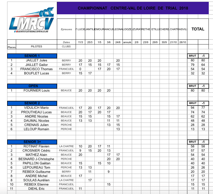 LMRCV : après l’épreuve de Saint Léonard des Bois et du fait de l’annulation du trial de Looze (89) initialement programmé pour le 8 juillet, la Ligue Motocycliste Régionale Centre-Val de Loire est déjà à mi-championnat.