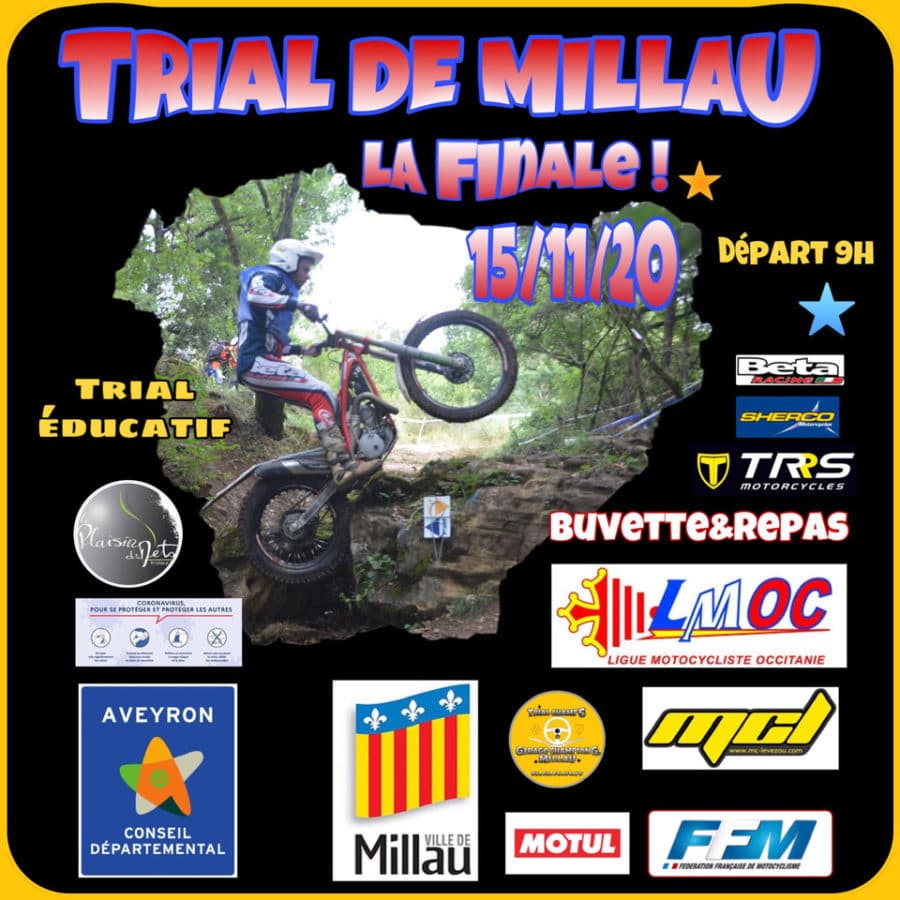 « Cette année , le Moto Club Levèzou organise son Trial le 15/11/20 sur le terrain de Millau. Le premier départ sera lancé à partir de 9 h, un trial un peu particulier en raison des mesures sanitaires à appliquer.