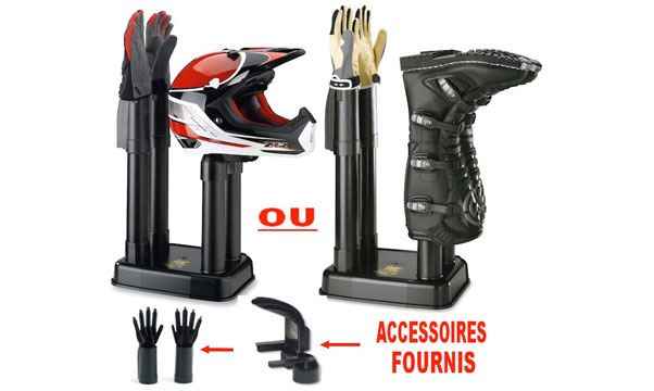 Vendu avec 3 accessoires supports : 1 pour le casque, 1 pour une paire de bottes et 1 pour une paire de gants.