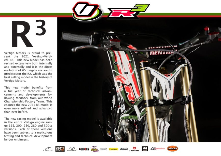 Vertigo lance sur le marché sa gamme R3. Elle fait suite aux modèles R2, la plus grosse vente de l’usine depuis sa création. Voici donc une série 2021 (125, 200, 250, 280 & 300 cm3) qui bénéficie de toute l’expérience engrangée par les pilotes officiels en 2020 et également d’une belle série d’améliorations.