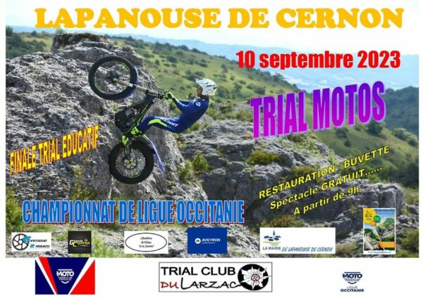 Le Trial Club du Larzac a le plaisir d’organiser, sur son magnifique terrain de Lapanouse, l’avant dernière épreuve de la saison comptant pour le Championnat de la Ligue Occitanie. Ce sera même la dernière épreuve de l’année pour la catégorie Educatif.